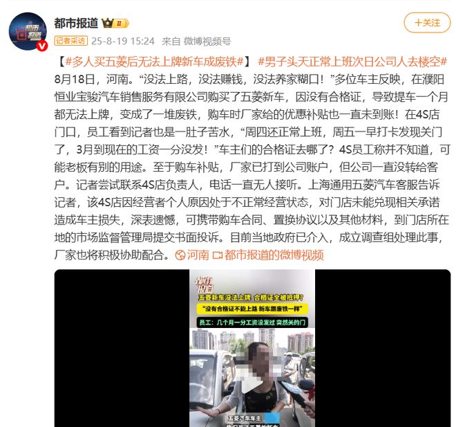 小编:最初购买的货币工具制造工具成为一堆在路上无法使用的“废铁”。河南的一些拥有的汽车在“睡觉” 最初购买的货币工具制造工具成为一堆在路上无法使用的“废铁”。河南的一些汽车拥有的汽车遇到了麻烦。我仍在星期四正常工作,但是当我在星期五清晨到达公司时,我得知门已经关门了 - 这不仅是与Pyang Hengye Baojun Automobile Sales Sales Seraper Service Co,Ltd员工的会面,而且对于某些拥有的汽车来说也是一个“问题”。如果您选择汽车,则不可能注册一个月,因为4S商店没有提供车辆证书,并且新车可以立即成为“废铁”。媒体新闻媒体新闻根据河南广播电视电视台的说法,八月下旬,许多汽车从Pyang拥有,Henan向媒体报道说,他们在Pyang Hengye Baojun Automobile Sales Sales Seraper Service Co,Ltd.购买了一辆新的Wuling Car,但他们没有注册,因为他们没有信心证书。这辆车的一些所有者希望通过购买来赚钱ING车辆。现在,车辆只能停在家里,并且可能不在路上,这可能会直接影响其经济资源。据媒体报道,同时,一些用户还报告说,未达到购买汽车时的补贴偏好,这增加了汽车拥有的汽车的经济损失。媒体报告不仅是那些受害的人,而且有4s商店的员工也是这一事件的受害者。 4S商店的一名雇员向媒体报道说,他们仍在周四正常工作,但在周五清晨检查了该公司,但发现该公司关闭了。令人惊讶的是,该员工在3月份的薪水没有得到支付,并且突然失去了运营商的联系,这可能遇到了一些问题,这可能会遇到一些问题。关于车辆证书的下落,4S商店的员工说他不知道这一点,并认为“老板可以使用其他用途”。实际上,在自动销售行业中,这是一个com可以安装在银行的货币融资实践。汽车销售商通常会以这种方式工作,但他们应该在出售汽车后按时兑换资格证书。但是,尚不清楚此事件是否是由此问题引起的。 Wuling Hongguang(参数|照片)Mini EV,而不是所涉及的车辆,只有图片要显示,建议您注意,SAIC-GM-GM-GM-GLOOD也会响应Tothis事件。 SAIC-GM-GM周的电动机在回应这一事件时说,由于操作员的个人因素,4S商店处于异常运行状态。制造商对商店未能履行相关承诺的承诺表示深刻的遗憾,这给汽车所有者造成了损失,并建议汽车在购买汽车,替换协议和其他材料中拥有合同,并向商店所在的商店提供书面投诉,并向市场管理局提交书面投诉。显然,从官方的SAIC-G来看一方面,M-gm-tright响应响应了这一事件的原因,即是由“操作员的个人原因”造成的。车辆损坏没有参与车辆,仅显示用户遭受的损失,等等。此外,SAIC-G建议的是,相关汽车所有者携带相关材料以向当地市场管理抱怨。显然,从SAIC-GM-GM战斗响应来看,无论是遇到用户还是其他相关损失的“无法注册”,它应该与SAIC-GM-GM-GM-GM-GM-GM-GM-GM-GM-GM型号无关,这是4S商店的原因。换句话说,在这方面,普遍的沃林可能是“没有责任”,当然,无论是否有责任,这不是一个好的决定。但是,应该指出的是,对于用户来说,如果购买汽车应该基于他们的喜好和对特定品牌的信心,并且很少选择汽车,因为他们想要“经销商”或4S商店。乌利NG模型不涉及车辆,而仅在图片中。因此,从这个角度来看,如果碰巧发生在MLOT上,那么值得考虑它是否影响品牌或汽车公司的形象以及用户的信心。 Che Yushi认为,对于长期的品牌开发,如果汽车公司应该加强其控制或对卖方进行筛查,则可能是一个值得思考的问题。实际上,由于4S商店爆炸等问题,无法注册用户和其他福利受到损害,在国内汽车市场中并不少见,而且这些不仅仅是具有类似问题的SAIC-GM-GM型号。在以前的文章中,Che Yushi强调说,购买汽车时,用户必须具体了解 - 深度企业家的信息,以避免对自己的利益造成伤害。 Wuling模型不涉及车辆,并显示了这些图片的肉。幸运的是,地方管理部门介入了这方面并建立了调查小组处理它。此外,制造商还表示,它积极帮助处理。在这里,我们希望SAIC-GM-GM-UP将继续为用户提供更好的产品和服务,从而在市场销售和开发方面获得更好的前景。在这里,Cheyu世界期望可以正确解决相关问题。同时,每个人都应该合理地参加类似的事件。至于对此事调查的最终结果,对 - 部门的调查以及该品牌的回应将占主导地位。本文的陈述:本文是Cheyu World的原始文章,没有。 11892,有些照片来自互联网,并记录了带有Psummary和相关材料的数据。 Cheyu World的原始版权,违规将追求。 特别声明:上面的内容(包括照片或视频(如果有))已由“ NetEase”自助媒体平台的用户上传和发布。该平台仅提供INFOrmation Storage Services。 注意:上面的内容(包括照片和视频(如果有))已由NetEase Hao用户上传和发布,该用户是社交媒体平台,仅提供信息存储服务。 当前网址:https://www.wugangdx.com//a/meishi/837.html 你可能喜欢的: Jishi Media的异常公告清 五月是历史上第二热门 Artimilla:我年轻的时候 香港小姐2025年梅毛恩发 哥哥加西Xie Mengwei的新 俄罗斯萨拉托夫住宅大 女子篮球队的另一位后 哈利王子希望在案件丢 越南摧毁了一个大型投 Yushu技术:人形机器人