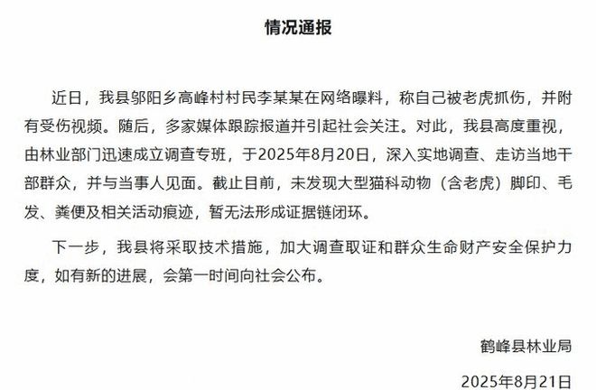 小编:最新发展:当地森林部迅速建立了一个特别调查小组,并于2025年8月20日对该地点进行了深入的调查,并参观了当地的干部和群众,